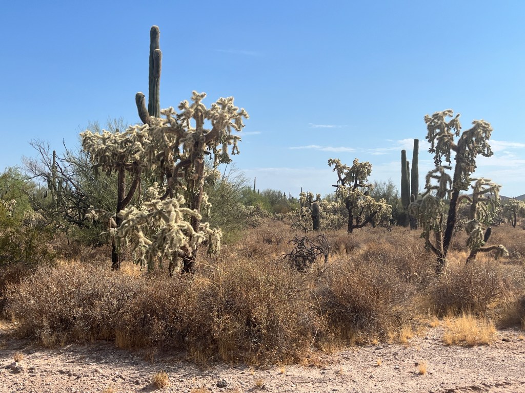The Teddy Bear Cholla stands barbed and still—